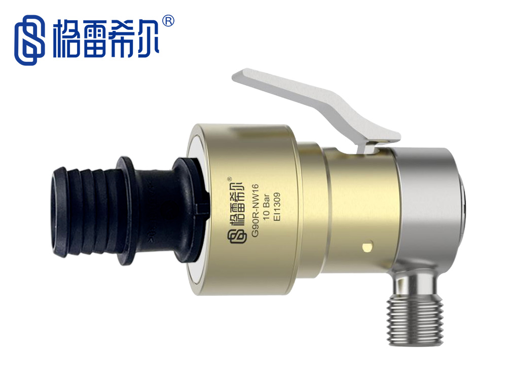 G90R-NW系列密封測試接頭,適用于VDA-NW冷卻水管接口的快速連接與斷開,尾部的L型流量孔可以360度旋轉,使流量輸入管免去纏繞的煩惱,可滿足一些狹窄空間的應用。